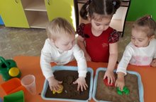 Детский сад "Карлыгач" Муслюмовского района. Юные исследователи первой младшей группы в рамках проекта " Юные исследователи" изучают свойства песка и делают выводы.