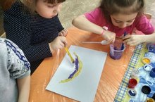 Уртанчылар төркемендә коймак оны, тоз, гуашь һәм су кушып төрле төстә буяулар ясау. Шул буяулар белән рәсем төшерү.