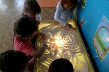 Дети второй младшей группы занимаются песочной терапией.