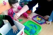Мөслим районы, "Карлыгач" балалар бакчасының беренче кечкенәләр төркеме балалары кинетик комнан төрле фигуралар ясау белән шөгыльләнергә ярата. Балаларның фантазиясына чикләр юк.