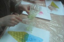 "Карлыгач" балалар бакчасы уртанчылар төркемендә сабын күбекләре белән рәсем ясау. -