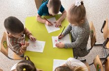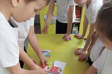 Кечкенәләр төркеме балалары белән "Юл йөрү кагыйдәләрен" өйрәнүне дәвам итеп светофор төсләрен туры китереп буядык.