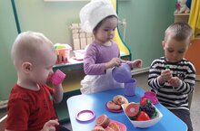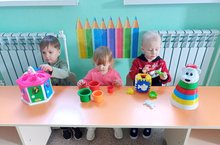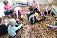 С детьми младшей группы играли с мячами, учились ловить и перекатывать мяч.