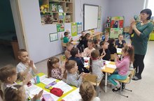 В подготовительной группе день театра. Дети сами исполняли роль героев сказок, научились показывать и рассказывать их. Через такую деятельность у детей повышается словарный запас, воспитывается культура речи с интонацией.