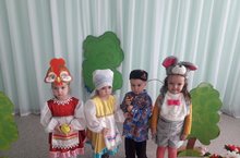 Мәктәпкә әзерлек төркемендә театр көне. Балалар әкият геройлары булып, әкиятне күрсәтә һәм сөйләргә өйрәнделәр. Мондый эшчәнлектә баланың сүз байлыгы арта, аваз культурасы интонацияле сөйләү тәрбияләнә.