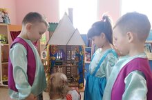 В подготовительной группе день театра. Дети сами исполняли роль героев сказок, научились показывать и рассказывать их. Через такую деятельность у детей повышается словарный запас, воспитывается культура речи с интонацией.