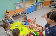 В рамках года родных языков и народного единства дети первой младшей группы познакомились с осенним урожаем.