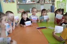 12 июнь - Россия көне уңаеннан,икенче кече яшьтәге төркемендэ, традицион булмаган алымнар кулланып Россия флагы ясадылар.Балалар флагларны танырга, дәүләт символикасын аерырга өйрәнделәр, зур кызыксыну белән Россия флагын ясадылар.