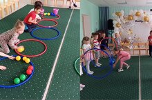 В подготовительной группе "Веселые старты". Формировать у детей потребность в здоровом образе жизни. Развивать ловкость, меткость, быстроту. Учить играть в команде, действовать сообща, по сигналу. -