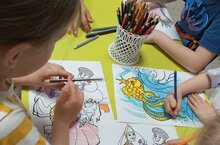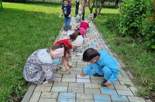 Уртанчылар төркемендә "Рәсем сукмагы" көне. Балалар төсле меллар белән төркем сукмагын җәйге төсләргә буядылар.