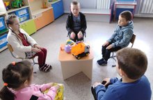 Мөслим "Карлыгач " балалар бакчасының беренче кечкенәләр төркемендә традицион булмаган ысул белән рәсем ясау. Балаларның фантазиясен үстерү, кул чукларын ныгыту.