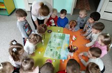 Мөслим "Карлыгач " балалар бакчасының беренче кечкенәләр төркемендә кисеп ябыштыру эшчәнлеге. Күмәк эш "Яландагы чебиләр". Чебиләрне биткә ирекле рәвештә урнаштырып, берничә предметтан торган композиция төзергә өйрәнәбез.