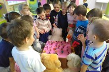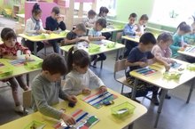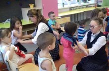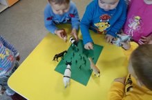 Бакчада балаларның кулларның вак моторикасын ныгыту буенча эш кечкенәләр төркеменнән үк башлана. Тәрбиячеләр эшчәнлекләрдән соң ирекле вакытта да бу өлкәдә эшне эзлекле итеп оештыралар. Тәрбияче Ф.Ганиева беренче кечкенәләр төркеме балалары белән сыерлар, бозауларга үләннәр әвәләгәннәр. балалар үзләре ясаган әйберләр белән бик оста уйныйлар.