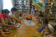 Воспитатель Ч.М.Хафизова и И.Р.Хабирова со своими воспитанниками посетили детскую библиотеку. Воспитанники в честь Дня независимости Республики совместно с работниками центральной библиотеки и воспитателями сделали из цветной бумаги флаг Республики Татарстан.