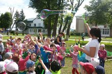 На территории МБДОУ "Муслюмовский детский сад "Кояшкай" прошел праздник мыльных пузырей. В данном празднике приняли участие воспитанники всех возрастных групп. Огранизаторы праздника воспитатели И.Р.Хабирова, Г.М.Тухбагалиева, Г.Я.Сафиуллина, Ч.М.Хафизова. Каждый воспитанник раздул свой мыльный пузырь. Проводились игры "У кого мыльный пузырь больше", "Укого летит выше", "У кого летит дальше", "На что похож мыльный пузырь". Педагоги подняли детям настроение, создали для детей вошебную атмосферу.