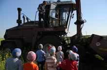 Зурлар төркеме тәрбиячесе Индира Хәбирова балаларны басуга экскурсияга алып барды. Биредә балалар авыл хуҗалыгы хезмәткәрләренең авыр һәм мактаулы хезмәте белән таныштылар. Комбайнчының машиналарга рапс, кукуруз кебек азык культураларын төяп җибәргәнен күзәттеләр.