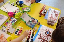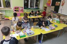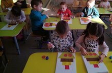 Мәктәпкә әзерлек төркеме балалары кичке якта Яңае ел бәйрәменэ багышлап рәсемнәр ясыйлар.