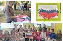 Россия көне алдыннан уртанчылар төркеме тәрбиячеләре балалар белән Туган ил турында, һәр илнең үз гербы, флагы һәм гимны барлыгы турында әңгәмәләр үткәрделәр. Балаларның алган белемнәрен ныгыту өчен коллектив аппликация ясадылар. Ул үзендә өч төсле Россия флагы дәүләт символикасын үз эченә ала.