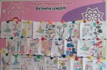 Бөек җиңү көненә икенче кечкенәләр төркеме балалары да әзерләнә. Алар бу бөек датага багышлап рәсемнәр ясадылар, буядылар. Стендка ясаган рәсемнәрен элеп куйдылар.