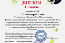 Бакчабыз балалары Роберт Миңнуллинның иҗатына багышланган республикакүләм шигырь бәйгесендә катнашып төрле дәрәҗәдәге дипломнарга лаек булдылар. Котлыйбыз!