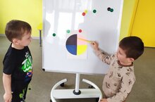 Икенче кечкенәләр төркеме балалары бүген тәүлек вакытлары белән төсләр аша таныштылар. Әлеге эшчәнлек балаларның актив сүзлек запасын киңәйтергә: иртә, кич, төн, көн сүзләрен кулланырга, вакыт аралыкларын аерырга, нәрсә эшләүләре турында сөйләргә, үзара ярдәмләшү, үз-үзеңне тоту культурасын үстерүгә ярдәм итә.