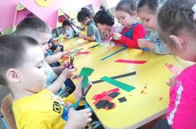 Икенче кечкенәләр төркемендә кисеп-ябыштыру шөгылендә күмәк эш башкарылды. Татар халык милли орнаментлары белән танышып, балалар "Әниләргә бүләккә ашьяулык" исемле аппликаөия ясадылар.