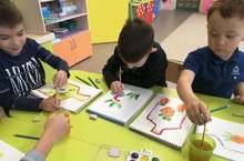 Мәктәпкә әзерлек төркеме балалары милли киемнәр белән танышулар дәвам итү максатыннан "Милли киемне бизә" дидактик уенын уйнадылар. Уен барышында балалар татар халык орнаментларын өйрәнделәр һәм ныгыттылар; орнамент исемнәрен дөрес әйтергә һәм танырга өйрәнделәр.