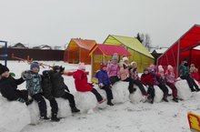 һәр көнне балалар саф һавада участокка уйнарга чыгалар. Кышкы уеннарны балалар бигрәк тә яратып уйныйлар. Карларны тәгәрәтеп төрле корылмалар ясыйлар.