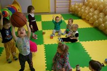 Беренче кечкенәләр төркеменең тәрбиячеләре балаларны эшчәнлекләрдән тыш буш вакытларда спортзалда төрле ирекле уеннар уйнаталар. Балалар үзләренә ошаган спорт инвентарен алып рәхәтләнеп уйныйлар.