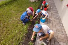 Балалар бакчасында тәрбиячеләр балаларга яшь үзенчәлекләренә туры китереп хезмәт күнекмәләре бирәләр. Зурлар төркеме балалары тәрбиячеләргә бакча территориясендәге чәчәклекләрне тәрбияләргә булышалар: чүп үләннәрен утыйлар, чәчәкләрнең төпләрен йомшарталар, су сибәләр.