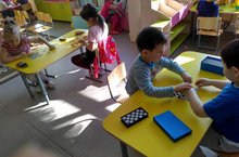 Мөслим авылы "Кояшкай" балалар бакчасының уртанчылар төркеме балалары эшчәнлекләрдән соң буш вакытларда пазллар җыярга, шашкалы уйнарга яраталар.