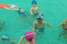 Мөслим авылы "Кояшкай" балалар бакчасының мәктәпкә әзерлек төркеме балалары бассейнда йөзәргә өйрәнәләр. Йөзү буенча инструктор балаларны кызыклы, мавыктыргыч уеннар аша балаларны йөзү серләренә төшендерә. Балалар теләп, яратып йөриләр.