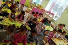 Мөслим "Кояшкай" балалар бакчасының зурлар төркемендә расписание буенча математика эшчәнлеге узды. Тәрбияче И.Хабирова эшчәнлекне В.А.Позинаның "Занятия по формированию элементарных математических представлений в старшей группе" китабы нигезендә алып бара.