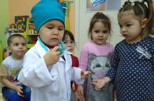 Икенче кечкенәләр төркемендә "Әти- әниемнең һөнәре" проекты кысаларында табиб һөнәре белән танышу булды. Балалар үзләрен авырулар, табиб ролендә сынадылар.