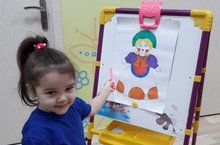 Бүген балалар рәсем эшчәнлегендә дымка уенчыклары белән таныштылар һәм аларны бизәү серләренә дә төшенделәр. Соңыннан алар дымка уенчыгын төсле карандашлар белән бизәделәр.