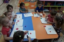 Во второй младшей группе занятие аппликации на тему: "Красивое полотенце". Сегодня дети продолжили знакомство с геометрическими фигурами: круг, прямоугольник. Сравнили два круга, затем украсили ими полотенце.