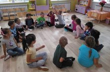 Музыка атналыгын дәвам итеп, мәктәпкә әзерлек төркеме балалары бүген "Чума үрдәк, чума каз", "Күрсәт әле, үскәнем", "Түбәтәй" җырлы- биюле уеннарын башкарып күңел ачтылар.