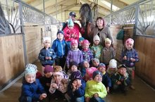 Дети средней группы посетили конно-спортивную школу. Инструктор провел экскурсию по территории, дети сами кормили лошадей своими гостинцами: хлебом, морковью и сахаром.