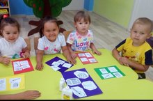 Икенче кечкенәләр төркеме балалары белән музыка уен кораллары белән танышуны дәвам итәбез. Баян, гитара барабан, пианиноларны аерырга өйрәндек. Аппликация вактында белемнәрне ныгыттык.