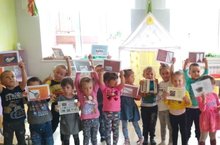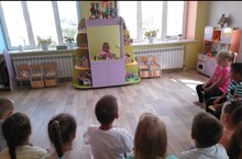 Мәктәпкә әзерлек төркеменә йөрүче балалар үзләре белгән әкиятләрне сөйләп иптәшләренә театр күрсәттеләр.