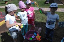 Бүген безнең бакчабызда су белән уеннар уйнау көне. Шул максаттан мәктәпкә әзерлек төркеме балалары бүген балык тотып уйнадылар. Уен бик мавыктыргыч булды.