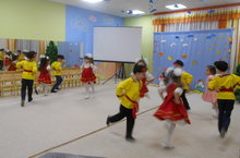 Мәктәпкә әзерлек төркеме балалары режим вакытларында рус телендә хәрәкәтле уеннар өйрәнәләр. 06.12.2018