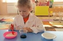 Воспитанники старшей группы провели научный эксперимент под названием "Цветная пена". Как результат, дети увидели химическую реакцию при смешивании двух веществ: соды и уксуса.