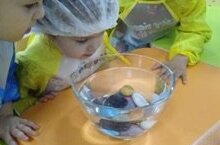 Кечкенәләр төркемендә " Фән сәгатьләре". Максат: танып белү- тикшеренү эшчәнлеге аша балаларны төрле предметлар суга эләккәч нишләүләрен тикшерү. Уен- тәҗрибә балаларга бик ошады.