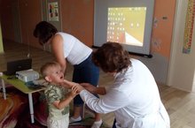 Беренче кечкенәләр төркемендә саф һавада физик күнегүләр көне.Балалар конусны йөгереп урап чыгарга,ккаршылыклар аша атлап чыгарга,турникта асылынып торырга өйрәнделәр.
