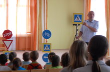 Бүген "Күбәләк" балалар бакчасында Мөслим эчке эшләр бүлеге балалар һәм яшьләр белән эшләүче инспектор Камалетдинов Алмас Азгамович белән очрашу булып узды.Ул балаларны юл йөрү кагыйдәләре белән таныштырды,юлда сак һәм уяу булырга өндәде.