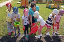 Яшь агачларга си сибү акциясендә "Күбәләк" балалар бакчасы да актив катнашты. Коллектив и воспитанники детского сада "Кубэлэк" приняли активное участие в акции по поливу молодых деревьев.