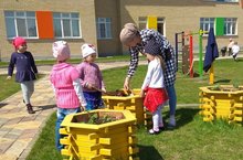 Мәктәпкә әзерлек төркеме балалары чәчәклек җирен йомшарталар. Петуния утыртырга вакыт җиткәнен зур түземсезлек белән көтәләр.