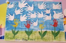 Коллективная работа в старшей группы на тему: "Мир. Труд. Май".