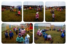 "Күбәләк" балалар бакчасының икенче кечкенәләр төркеме балалары саф һавада физик культура белән шөгыльләнәләр. Участокта балалар хәрәкәтле уеннар уйныйлар,йөгерәләр, сикерәләр.